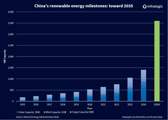To hit the country's ambitious target of installing 3,600 GW of solar and wind projects by 2035, China must install roughly 400 GW of new renewable energy capacity per year.